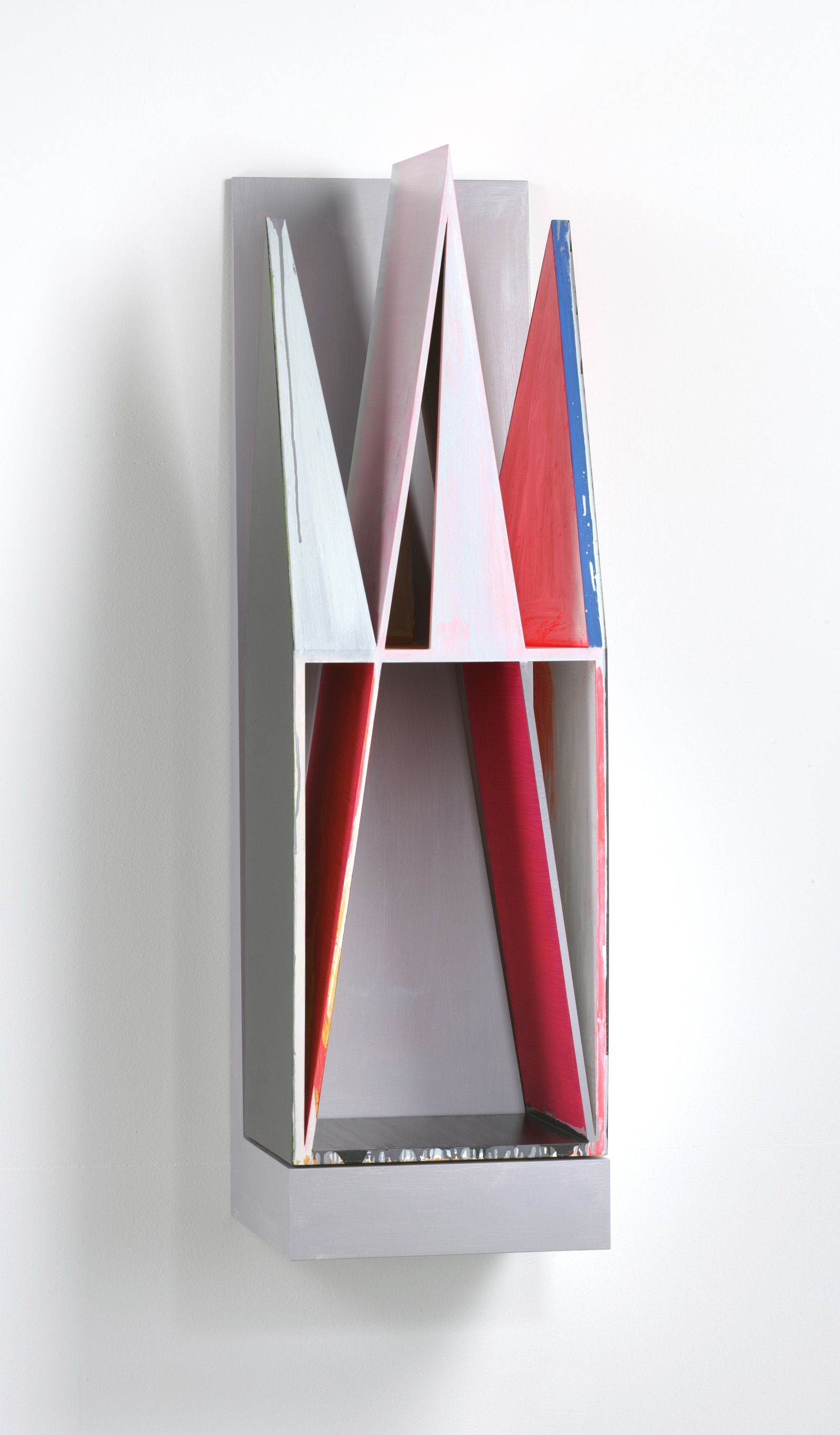 Like the sculpture Casa Amalia, the biggest painting in the exhibition, which carries its title Casa Amalia Index, is defined by the form of the square and the cube respectively. At the same time the works seem to present a reduced form index to the viewer: while in the painting a continuous loop is suggested by the "picture in the picture", the sculpture follows the same principle. If the viewer looks through the removable cover of the box, he discovers immediately further small boxes.