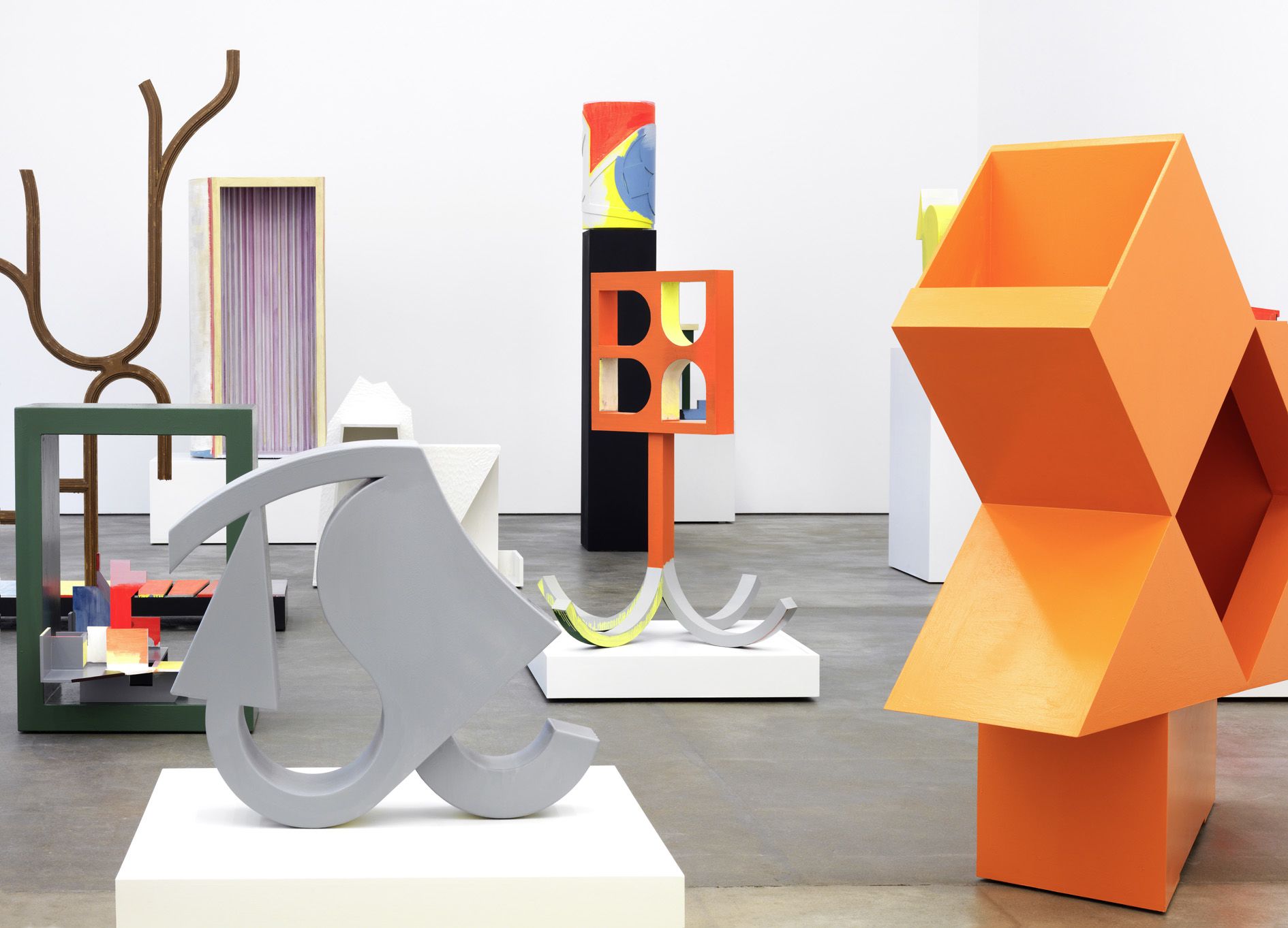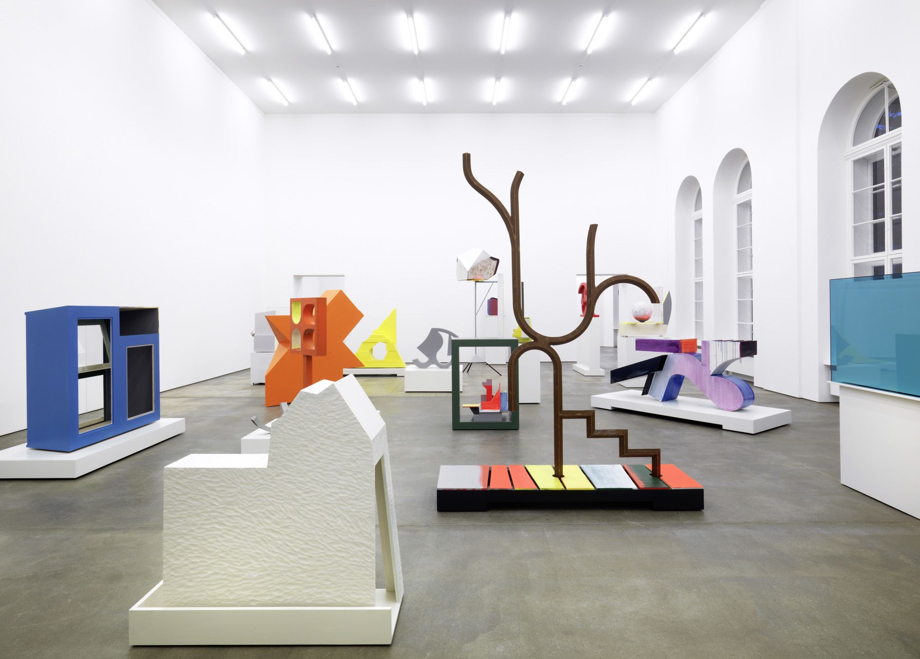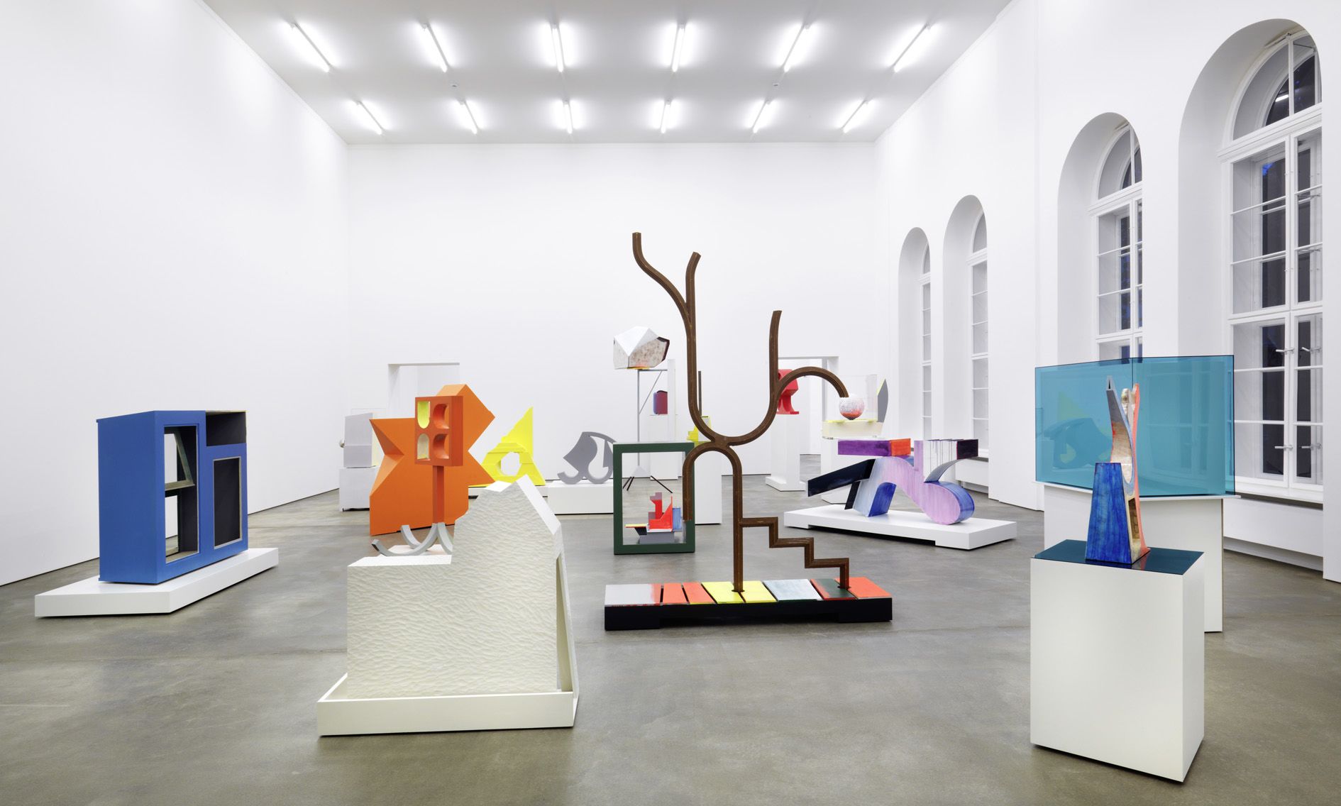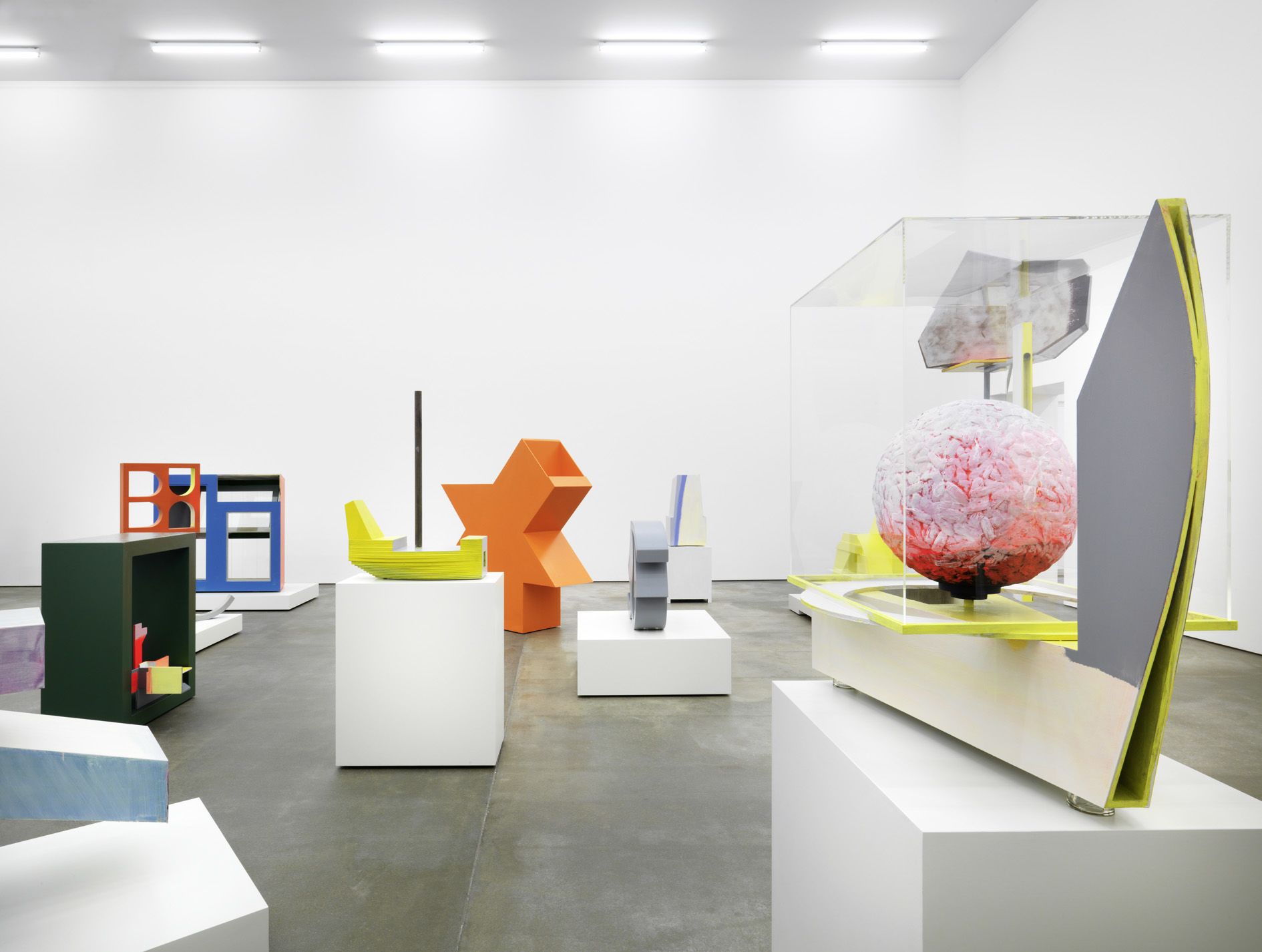 In this exhibition Thomas Scheibitz has devoted himself exclusively to sculpture and the sculptural surface. A configuration of around thirty objects marks out the exhibition space in a field-like arrangement and shows possible areas of interaction between the autonomous sculpture, its arrangement in space and concepts such as scale and proportion.